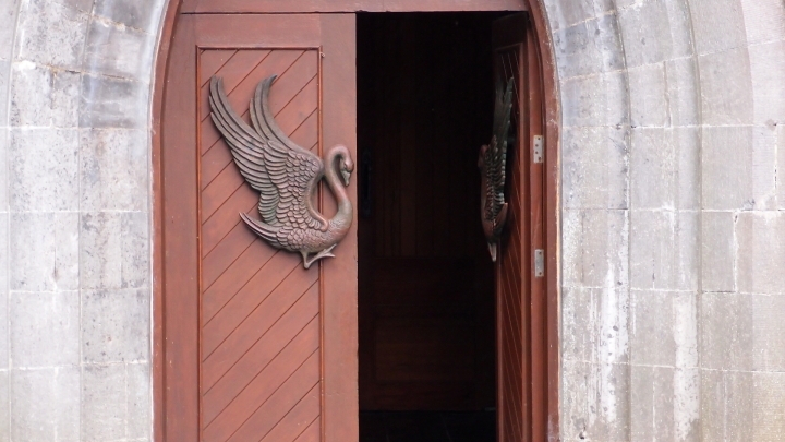 Zazírali jsme na hrob v tichém usebrání a odebrali se do kostela. Zrovna tam paní průvodkyně kázala nějaké výpravě. Prohlédli jsme si zajímavé desky na zdech, pestré varhany a uznale pokývali hlavou nad ústředním topením.