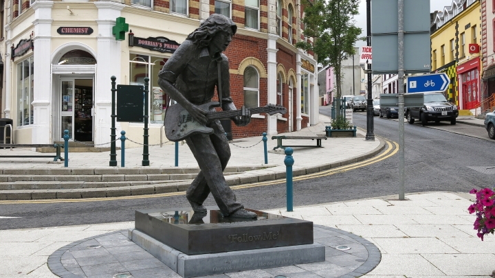 tady. Jak je v Irsku zvykem, pyšní občané města mu postavili krásnou sochu.