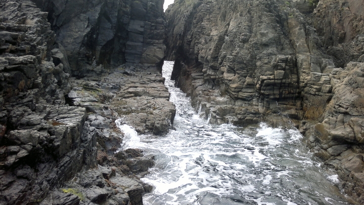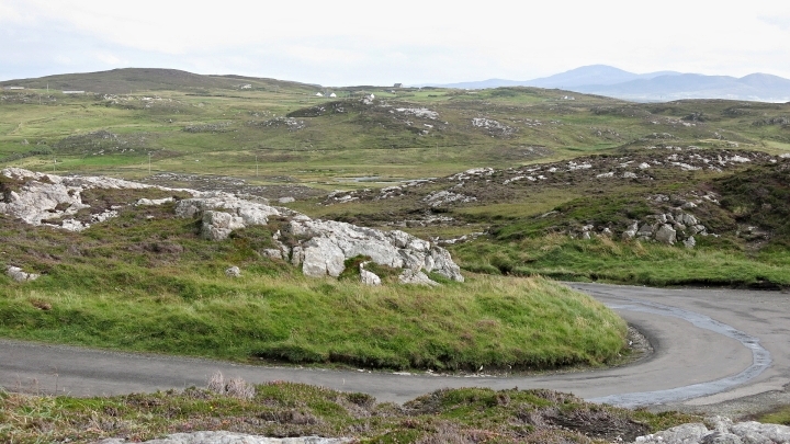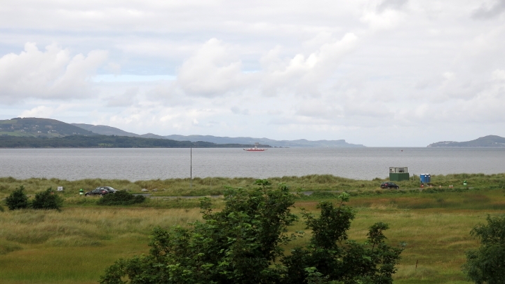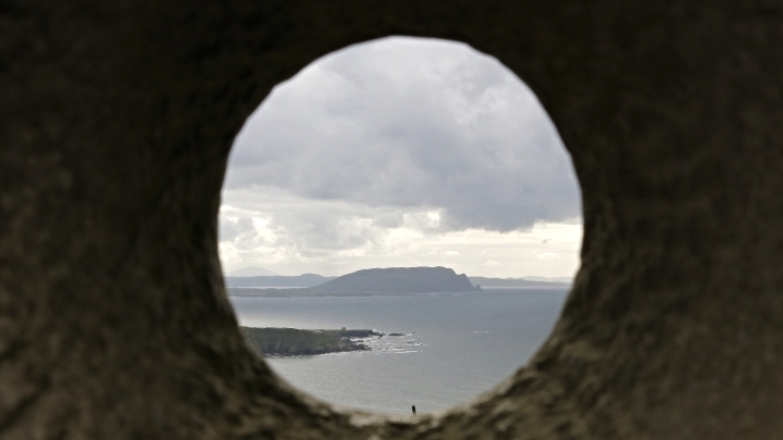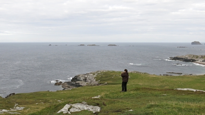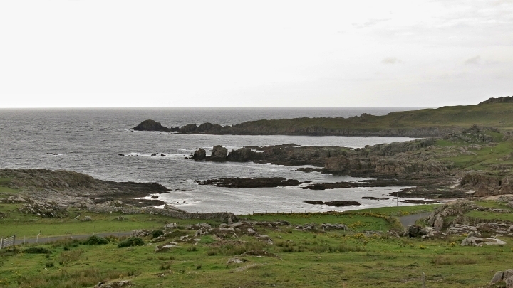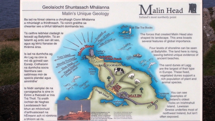 Na parkovišti tam stojí zvláštní pomník s provrtanou dírou. Fotě skrze tento otvor zjistil jsem, že osa otvoru míří na jakousi skálu v moři. Proč, nevím; takže nasednout a hbitě na nejsevernější bod Irska!