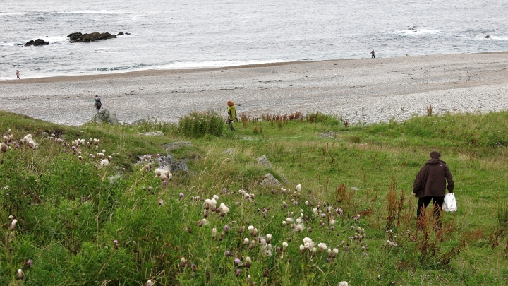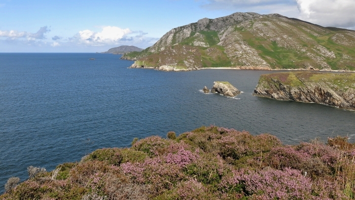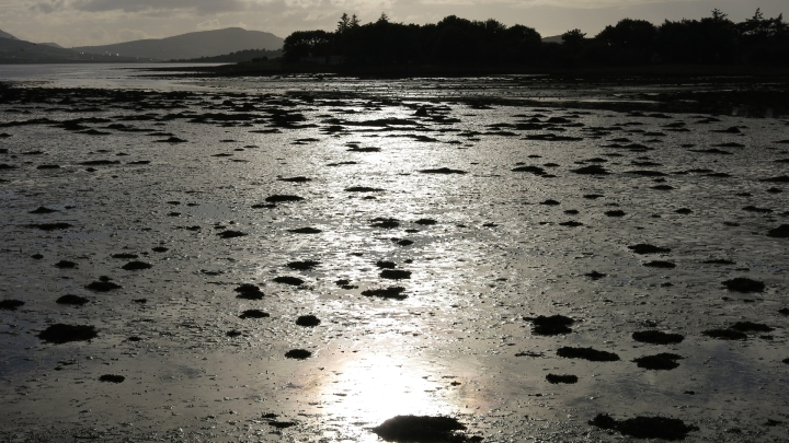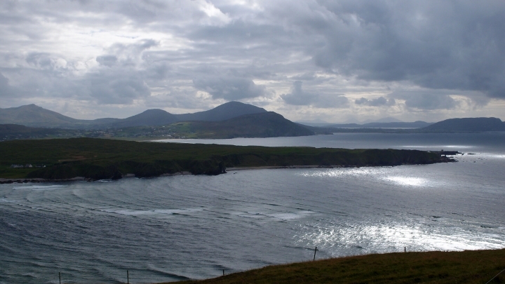 Trawbreaga Bay podél pastvin a zírali na protější břeh.