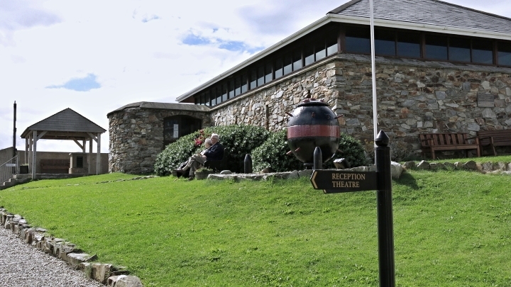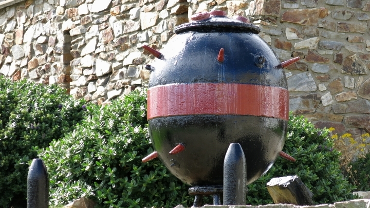 Ta stojí na odděleném ostrově a je v ní muzeum, před muzeem mina, na skále roura (snad ekologický odpad?), a na prťavém ostrůvku vedle cosi betonového.