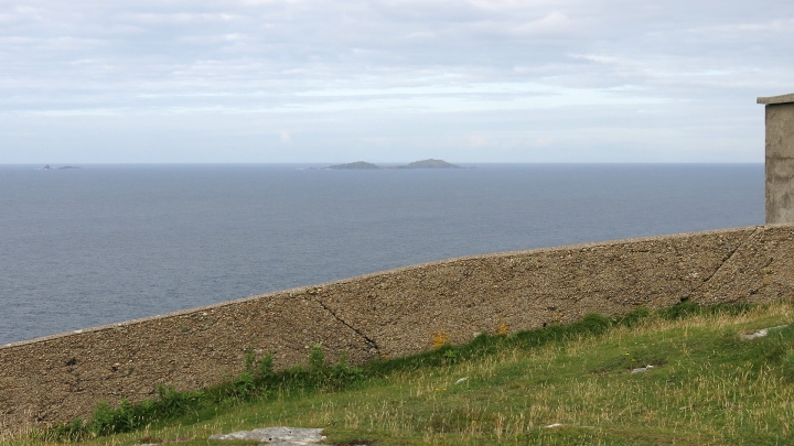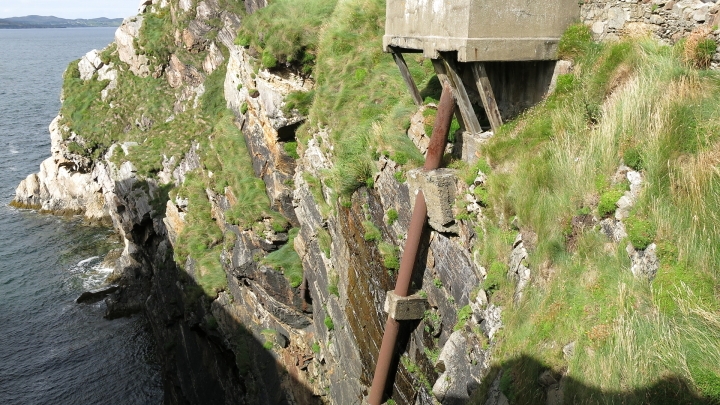 Na skalách jsou zbytky betonových objektů a zdí, kterým vévodí věž. Jsou to pozůstatky telekomunikační stanice, kterou za druhé světové války tajně postavili Britové se souhlasem Irska ke sledování rádiového provozu německé armády. Irové přeci jenom nebyli úplně neutrální! :o) Angláni měli z tohoto mysu severní Atlantik jako na dlani.