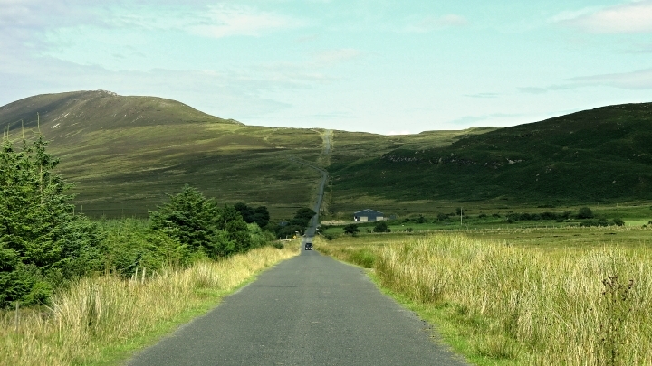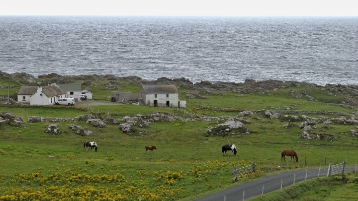 Severní břehy Irska jsou divoké, cesta z kopce do kopce, sem tam farma, na které bych nechtěl bydlet. Někde trochu dál za obzorem je asi severní pól.