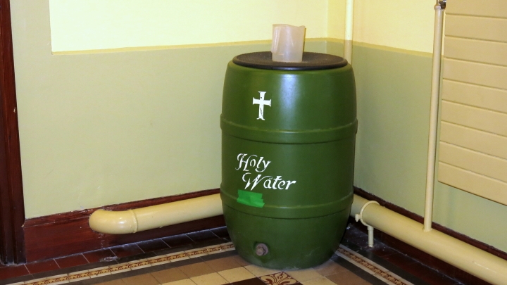 Ukázalo se, že to jakási profesorka zpěvu učila místního varhaníka doprovody k chystanému koncertu v rámci pěveckých kurzů. Přísedící frekventantky se jí za zády pošklebovaly. Já taky. Ale dvě věci tam měli pěkné: svatého Františka a sud se svěcenou vodou.