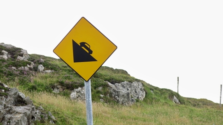 Inishowenu. Dopravní značka prozrazuje zálibu místního obyvatelstva v brokovnicích.