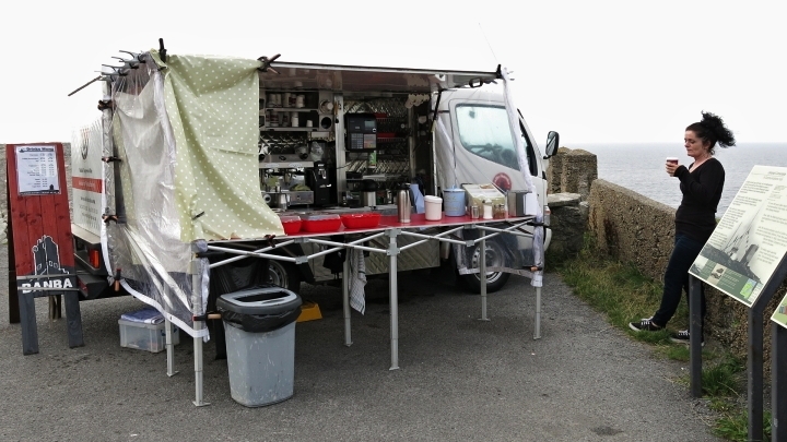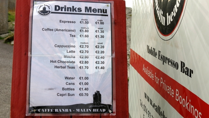 Kromě různých trosek se na Malin Headu překvapivě najde i stánek s občerstvením!