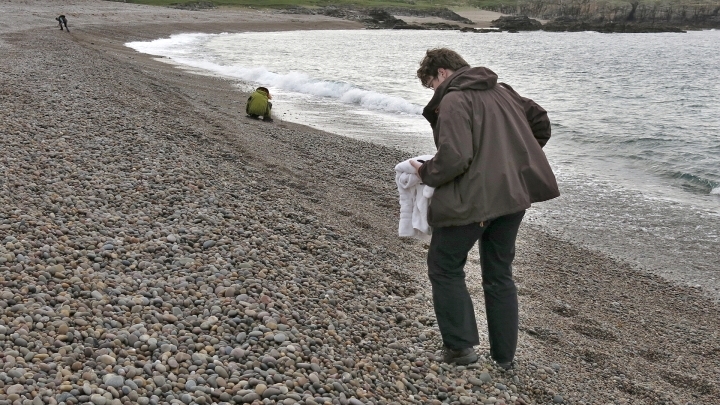 Byli jsme tam skoro sami. Věra vyndala z tašky ručník a začala do něj sbírat. Mladíci se přidali, Tom se posléze vrhl do vln.