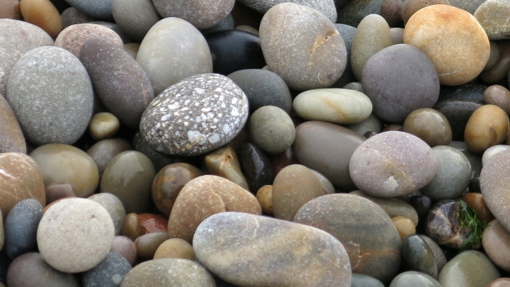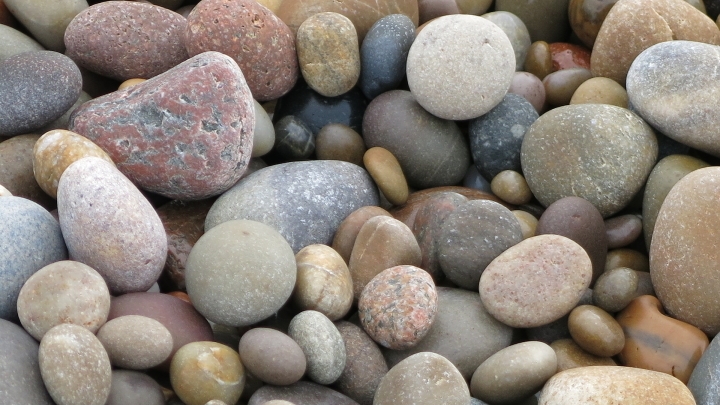 Je plná oblázků všech velikostí, neuvěřitelně pestrých, flekatých i šekatých.