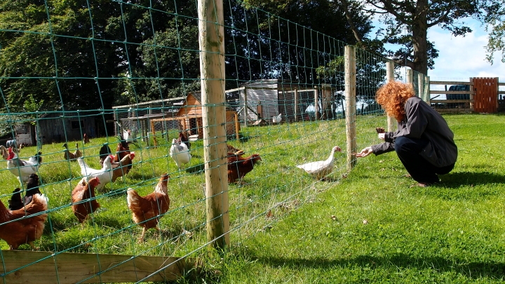 Ano, nacházíme se na farmě. Uprostřed farmy. Dá se tu nakrmit beránek nebo kachna, pohladit kočička.