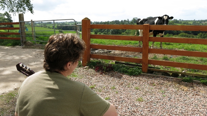 Ondra s těmi dobytky dokázal navázat úžasný kontakt. Jak se objevil s kytarou, krávy se dychtivě seběhly.