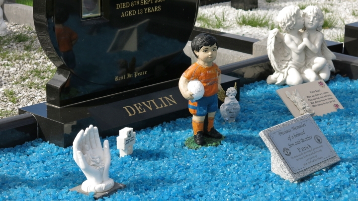 Tyrone, takže toto jméno se tu hojně vyskytuje. Také tu leží jakýsi malý Patrick a Quinn, na kterém už vyloženě šetřili.