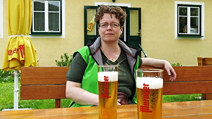 Murauer Bier v bufetu u řeky.