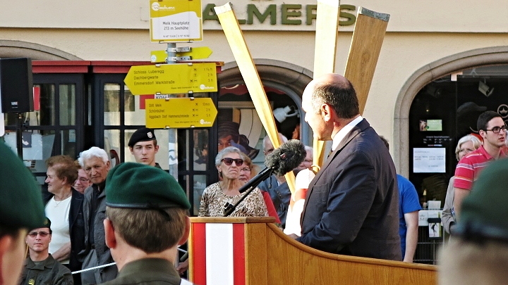 webové stránky, na kterých si lze počíst o jeho historii. V první světové válce prý kromě pionýrských skutků byli i pionýry v prolité krvi. A akce, na kterou jsme na náměstí v Melku zírali? Součást oslav stoleté existence této vojenské jednotky. Museli mít minulost velmi pestrou: od císaře pána přes republiku a Hitlera až do EU!