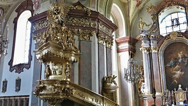 Kazatelna je pozlacená tak, že už pozlacenější být nemůže.