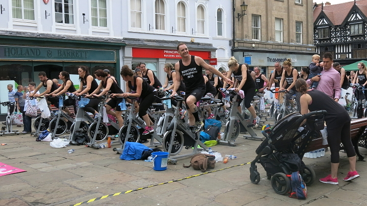 Zajímavý kontrast. Snaha o prohlídku objektu byla poněkud brzděna šílenými cyklisty, kteří stojíce jezdili na náměstí.