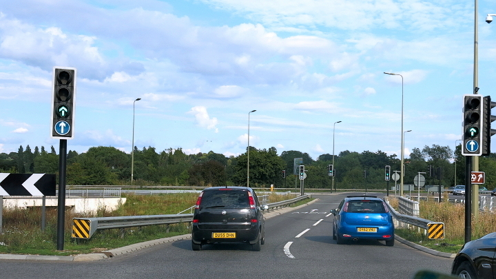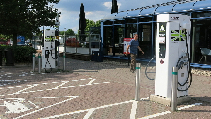 Při další zastávce na oddych jsme obdivovali napájecí stojany pro všechny možné druhy elektromobilů, v Čechách tehdy ještě nevídané. Narazili jsme i na šokující kruhový-nekruhový objezd, který byl řízen světly.