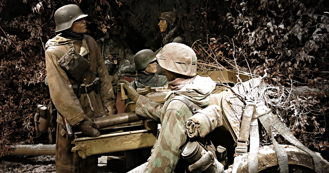 Pomyslel jsem si: Který kokot mohl nařídit na závěr prohrané války nesmyslný útok o vánočních svátcích? Samozřejmě, Hitler! A podíval jsem se do další vitríny a