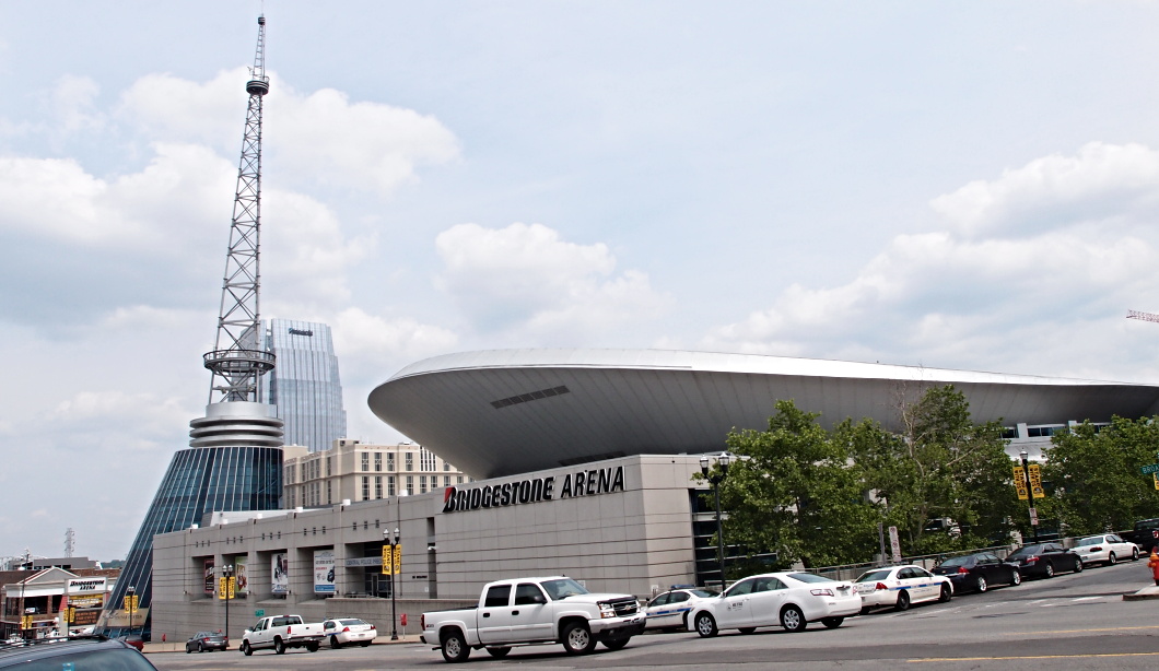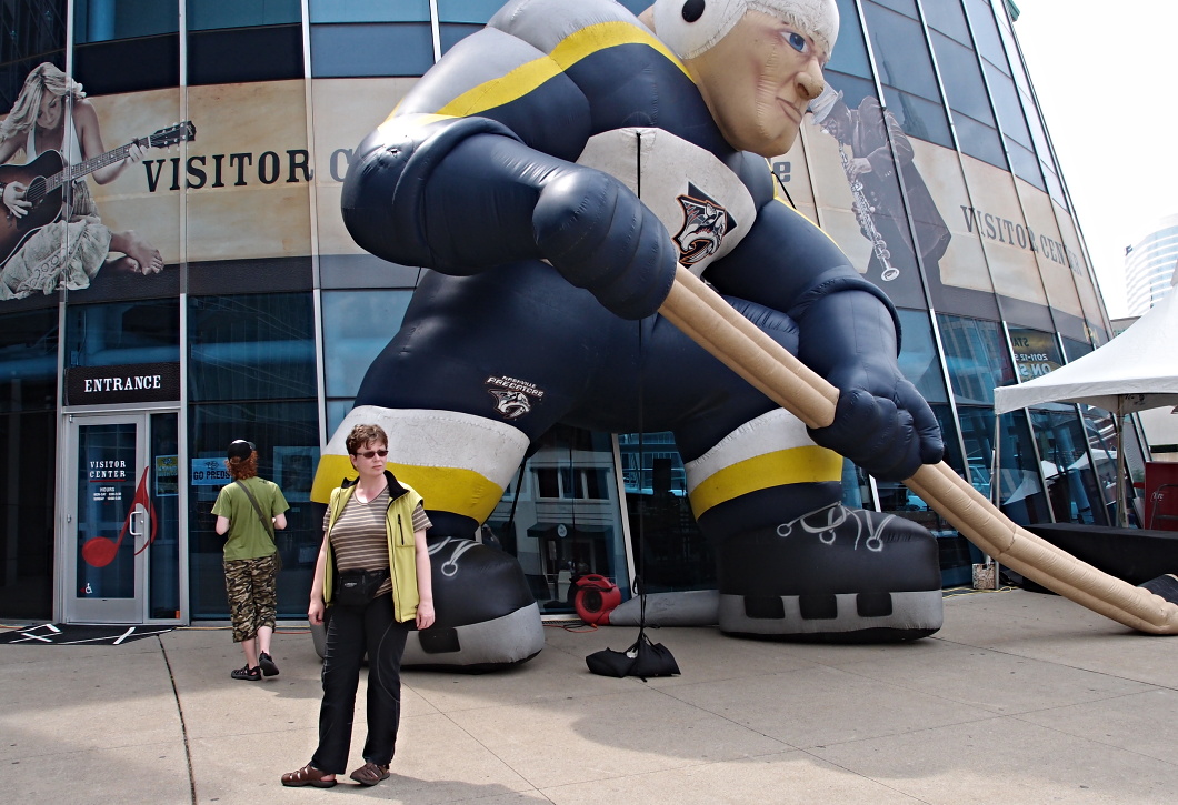 Cestou míjí halu, ve které pravidelně exhibují hokejisté Nashville Predators