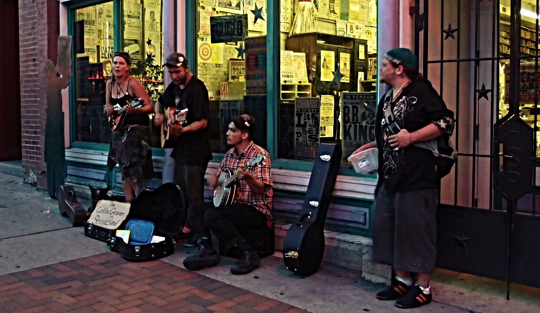 Slyšet lze různé styly od bluegrassu po folk music v provedení výborném až strašném. Muzikanti se předvádějí na pódiích, umístěných hned u vchodu