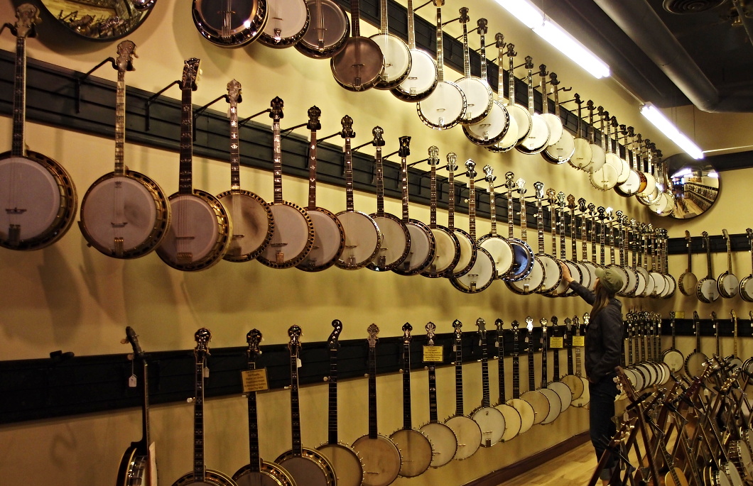 A pak jsme také zašli do krámu s hudebními nástroji. Tolik bendž (to je strašný výraz, ale nevím, jak utvořit množné číslo od slova banjo)