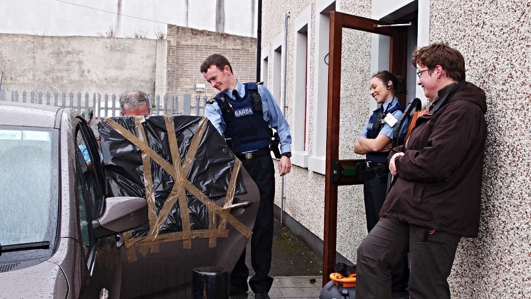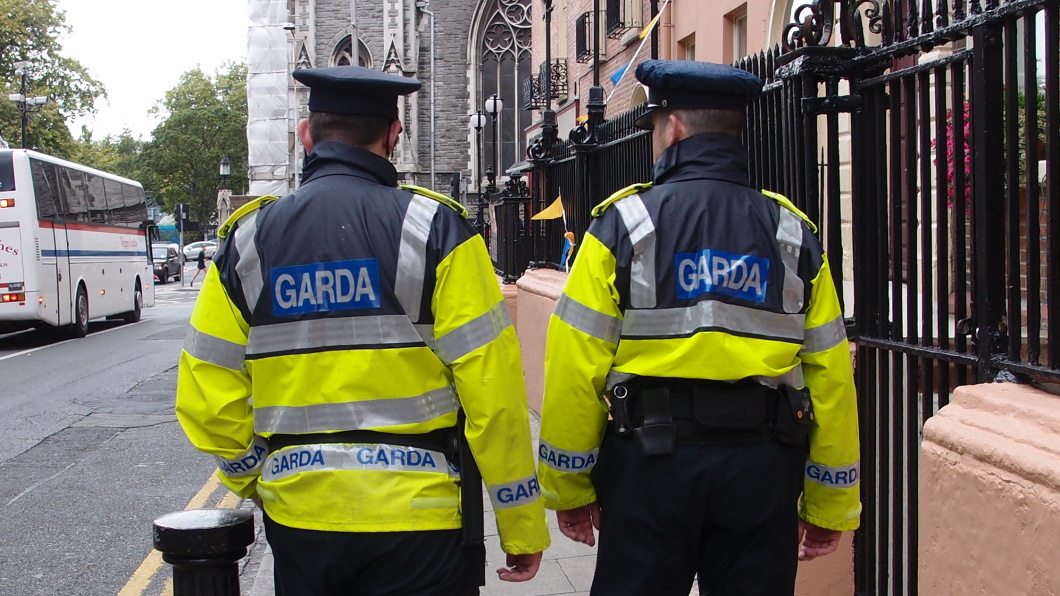 Garda má na svém znaku text pouze v irštině, na autech, uniformách a všude, kde byste čekali nápis POLICIE, je nápis GARDA. Budovy,