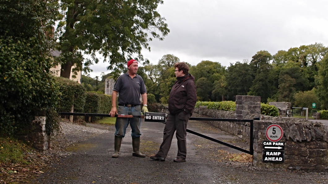 dojeli ke klášteru Monasterboice na poloprázdné parkoviště, bylo po sezóně, jenom se tam motalo nějaké neustále