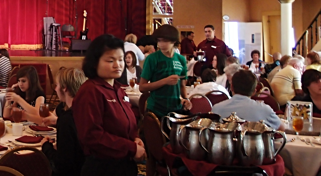 Bude dvanáct, čas na lunch, neboť v Americe se neobědvá. Divadelní sál se zaplňuje bílými osadníky ze všech koutů USA. Na jevišti krásně