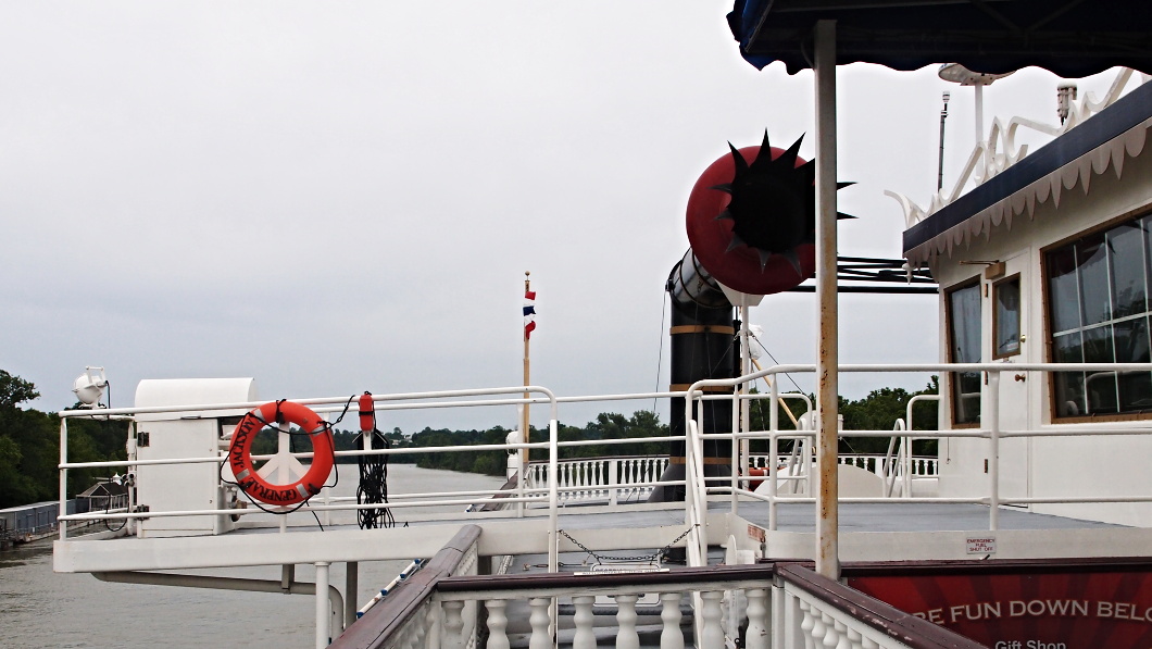 I když možná v tomto případě jsou na stlačený vzduch, neboť loď nemá žádný parní kotel. Za časů dávných showboatů na takový nástroj mocné