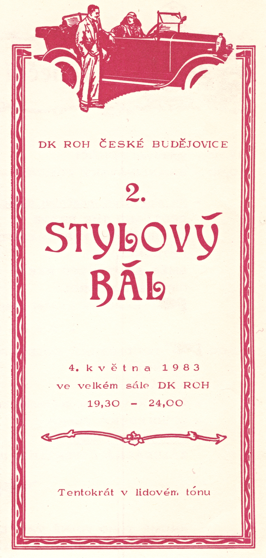 V květnu jsme udělali pokusně STYLOVÝ BÁL. Ve spolupráci s Jasanem Bonušem a budějovickými folkloristy jsme vytvořili kuriózní program