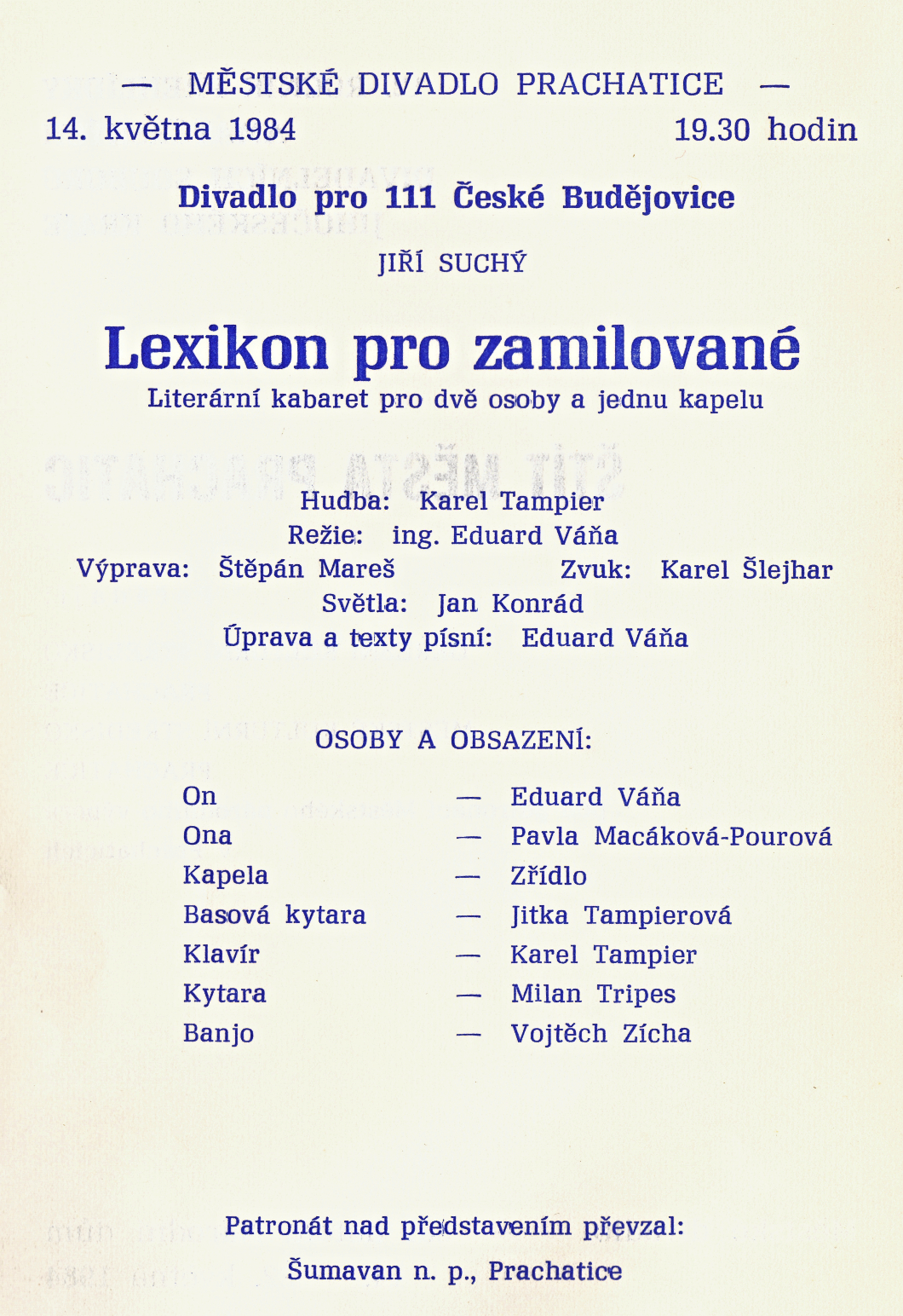 29. ledna už jsme poprvé hráli Lexikon pro zamilované v novém obsazení s kytaristou Zdeňkem Krátkým.